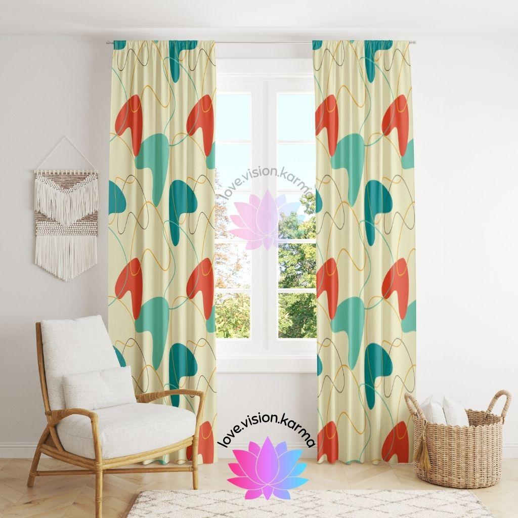 Vintage 50s, Retro Mid Century Modern Lines and Orbs Blue & Green Shower Curtain