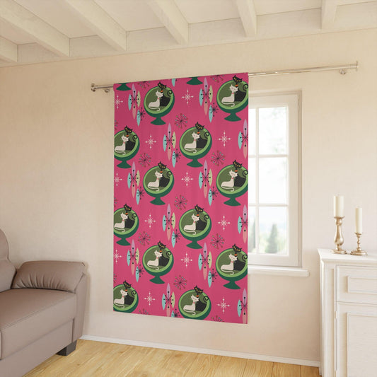 Retro 50s Cat Couple Ball Chair Pink & Green MCM Blackout Window Curtain