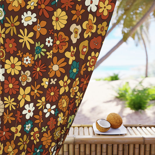 Retro 60s 70s Groovy Floral Mid Century Modern Brown Boho Blackout Window Curtain