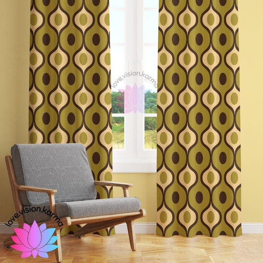 Retro 60s 70s Geometric Mid Century Mod Green Curtains