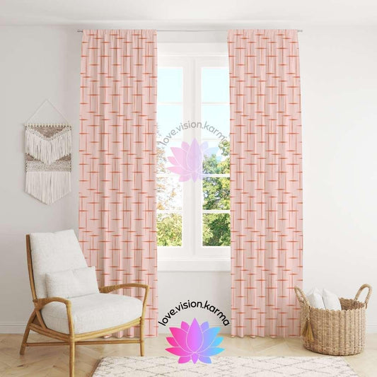 Retro 50s Mid Century Mod Lines Light Pink Curtain Panel