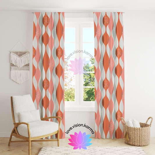 Retro 50s Mid Century Modern Orange Blackout Window Curtain