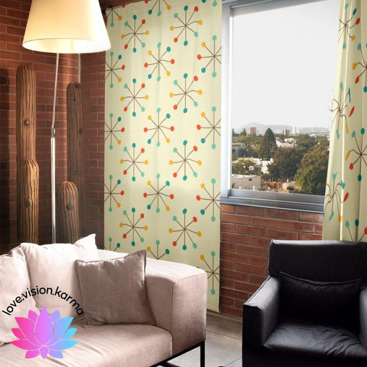 Retro 50s Atomic Starburst Mid Century Mod Multicolor Curtain Panel