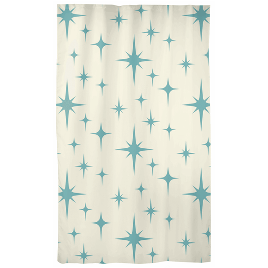 Retro 50s Atomic Starbursts Blue on Cream MCM Curtains
