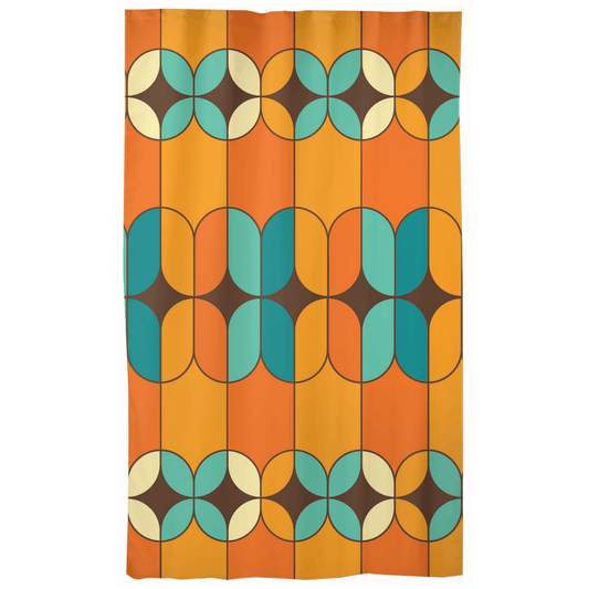 Retro 60s 70s Mid Century Mod Geometric Orange and Teal Curtain Panels