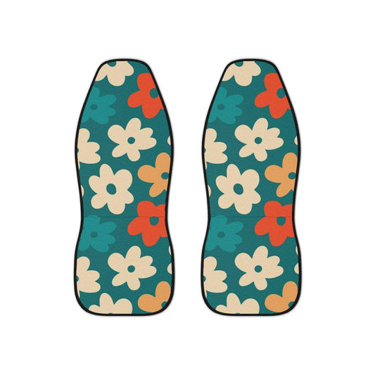 Retro Boho Flowers Teal, Orange & Yellow MCM Car Seat Covers