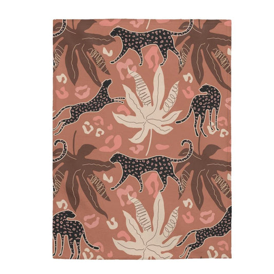Retro Boho Leopard in Pink/Brown Jungle Lightweight Velveteen Blanket