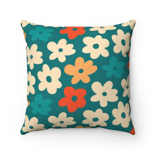 Retro Boho Flowers MCM Multicolor Throw Pillow