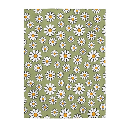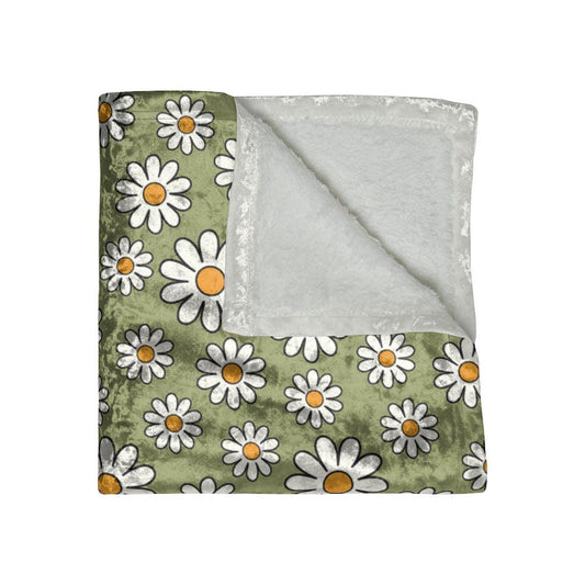 Retro Boho Daisy Sage Green MCM Crushed Velvet Blanket
