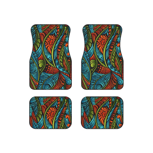 Boho Abstract Retro Orange, Green & Blue Car Mats (Set of 4)