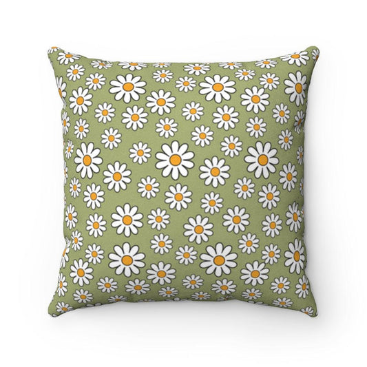 Boho Daisy Retro Flower MCM Sage Green Pillow