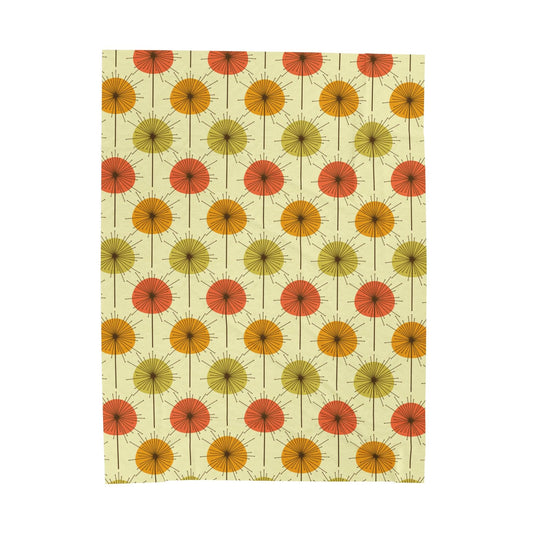 Retro Mid Century Mod Dandelion Yellow, Orange & Green Velveteen Lightweight Blanket
