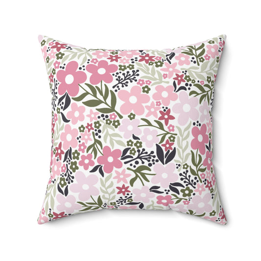 Retro Minimalist Scandi Floral Cottagecore MCM Light Pink Throw Pillow