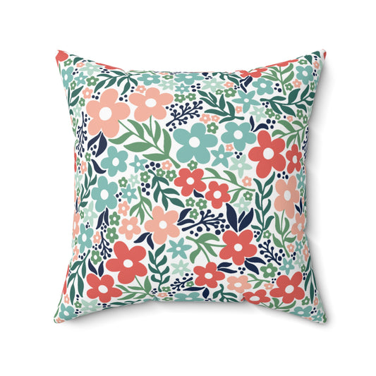Retro Minimalist Scandi Floral Cottagecore MCM Coral & Teal Throw Pillow