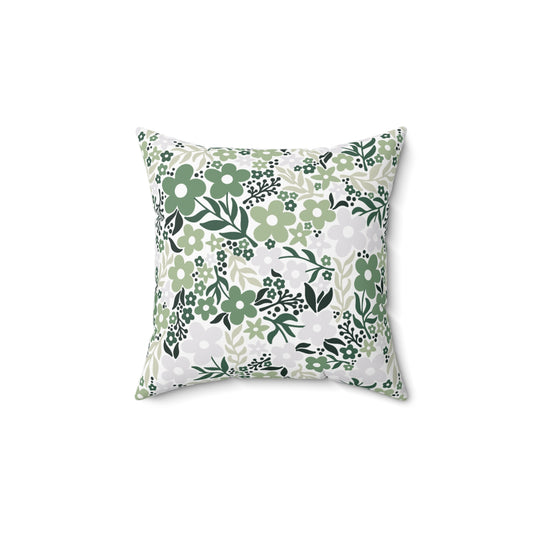 Retro Minimalist Scandi Floral Cottagecore MCM Green Throw Pillow