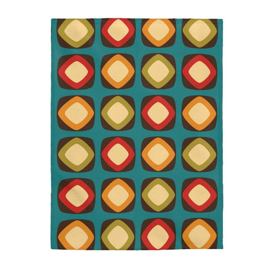 Retro Mid Century Rounded Squares Multicolor Velveteen Lightweight Blanket