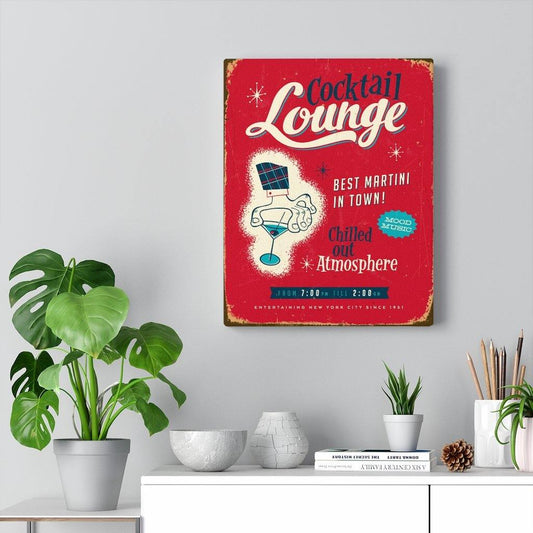 Retro Red 1950's Cocktail Lounge Sign | Mid Century Canvas Gallery Wrap