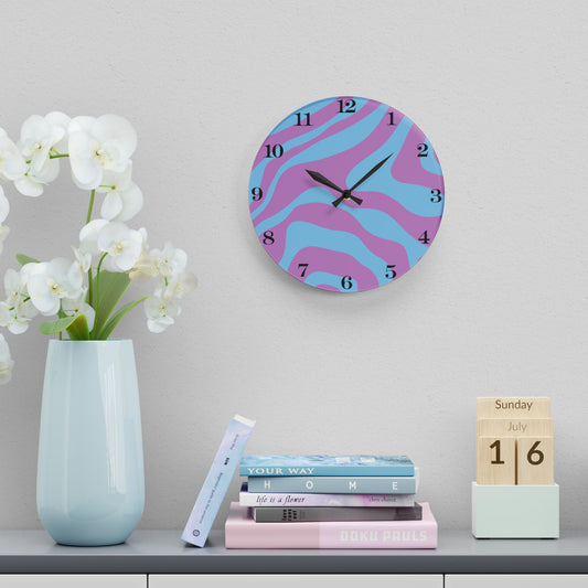 Retro Y2K Psychedelic Groovy Swirl Blue & Purple Mid Century Mod Acrylic Wall Clock