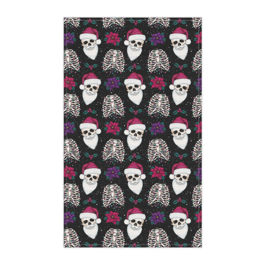 Skull Santa Goth Christmas, Creepy Scary Black Creepmas Holiday Kitchen Tea Towel