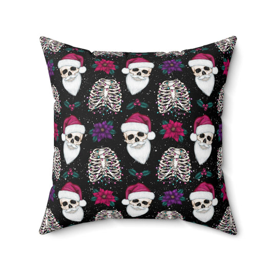 Skull Santa Goth Christmas, Kitschy Black Creepmas Holiday Throw Pillow