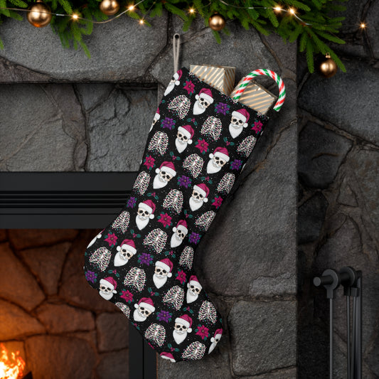 Skull Santa Goth Christmas Stocking, Creepy Scary Black Creepmas Holiday Decor