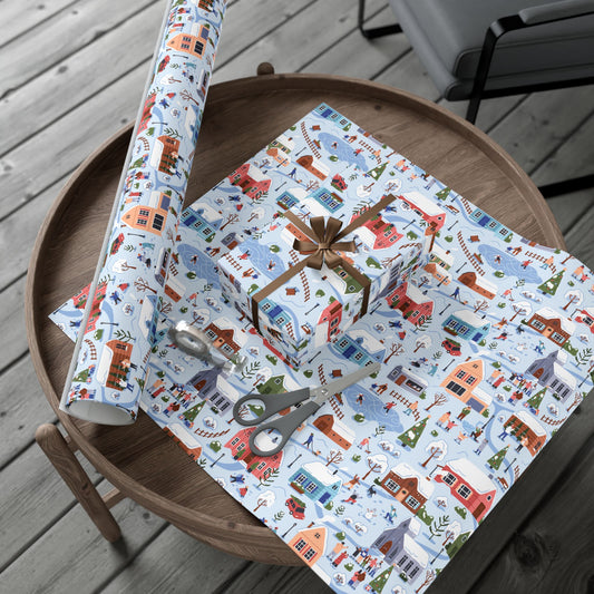 Small Town Christmas Village, Retro Vintage Winter Scene, Multicolor Eco-Friendly Gift Wrap