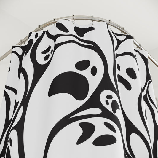 Spooky Ghosts Swirling, Halloween Black & White Shower Curtain