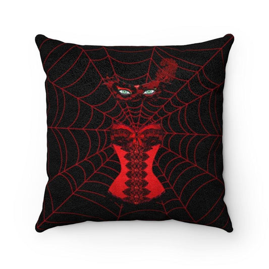 Spider Witch Halloween Pillow Red & Black Glam Goth Decor