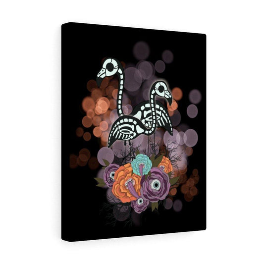 Spooky Skeleton Flamingos & Creepy-Eyed Flowers Canvas Art | Indoor Halloween Decor