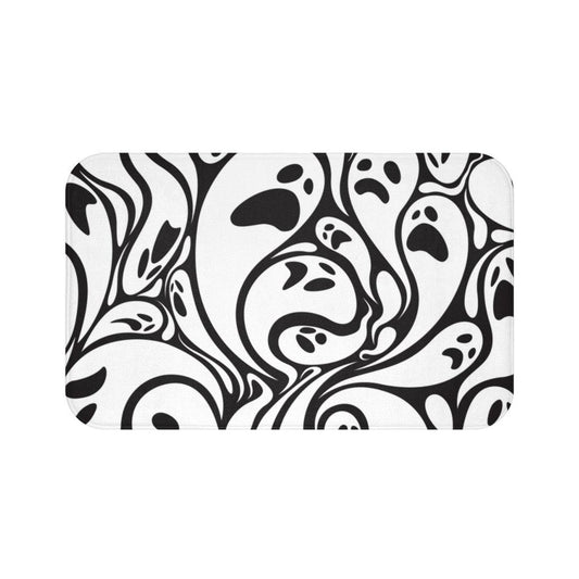Spooky Swirling Ghosts, Halloween Black & White Bath Mat