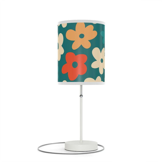 Boho Retro Flowers Teal MCM Tabletop Accent Lamp
