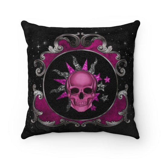 Cosmic Skull Halloween Pillow Ornate Pink & Black Glam Goth Decor