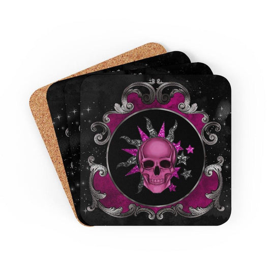 Cosmic Skull Halloween Coaster Set Pink & Black Glam Goth Decor