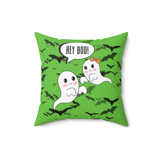 Cute Kawaii Ghost, Hey Boo Halloween Green and Purple Pillow with Different Color on EACH side