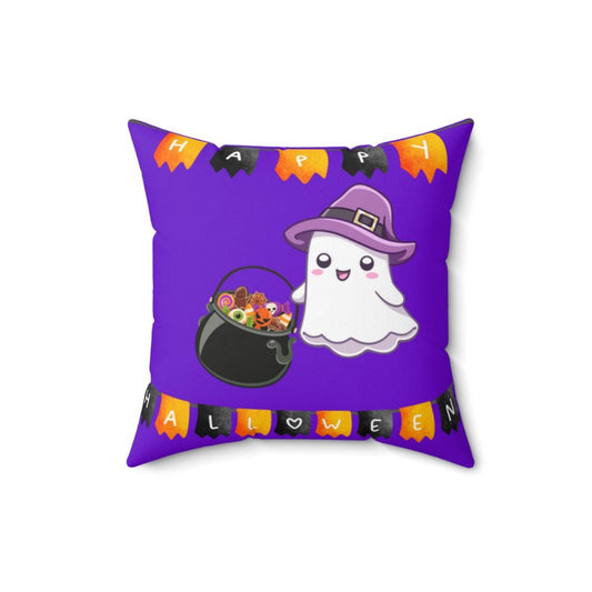 Cute Ghost Trick or Treating, Kawaii Purple Halloween Accent Pillow