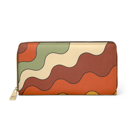Groovy Retro 70's Rainbow Burst Waves Multicolor Zipper Wallet