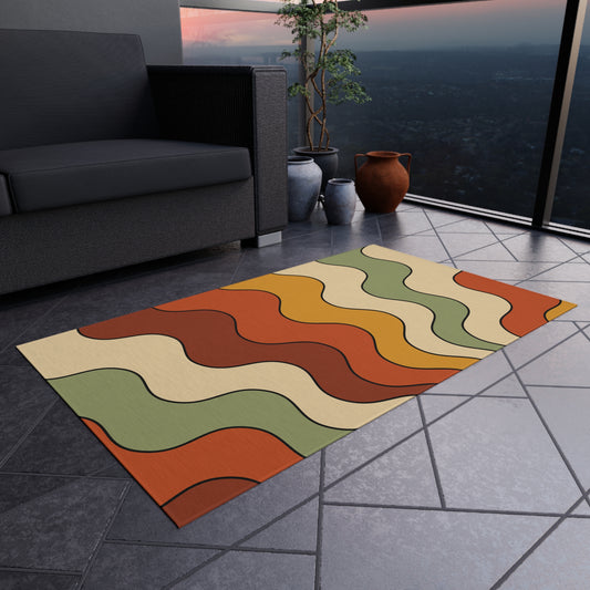 Groovy Retro 60s 70s Wavy Rainbow Mid Century Mod Multicolor Indoor/Outdoor Accent Rug