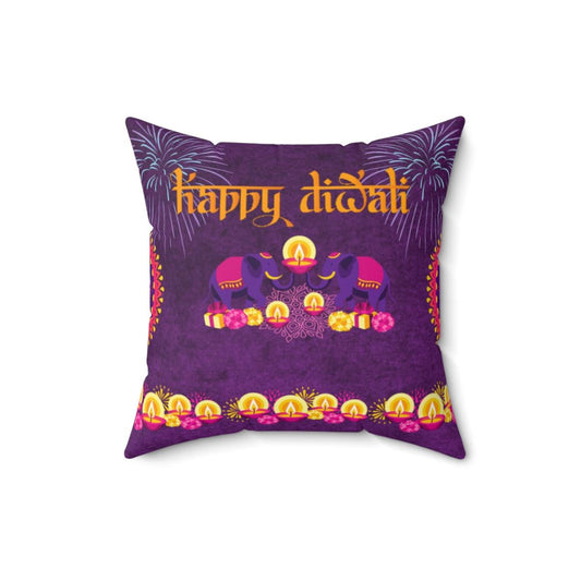 Happy Diwali Home Decor with Diyas & Elephants Purple Throw Pillow