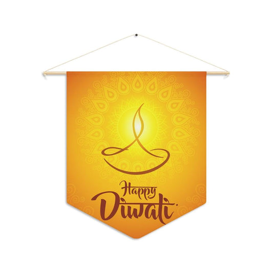 Happy Diwali, Diya Holiday Decor Yellow Wall Pennant