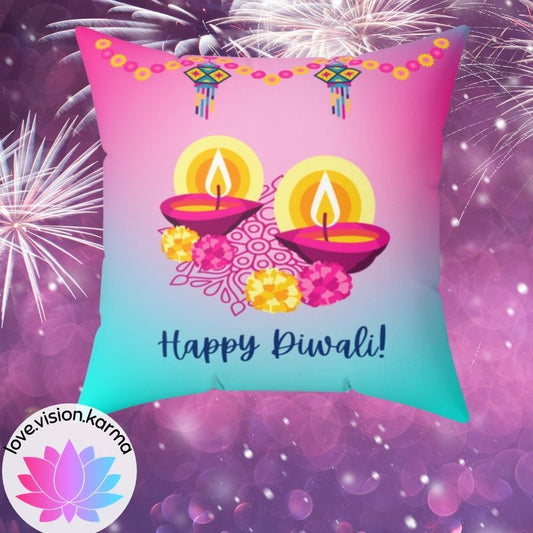 Happy Diwali, Diya, Garland and Flower Ombre Pillow, Diwali Home Decor