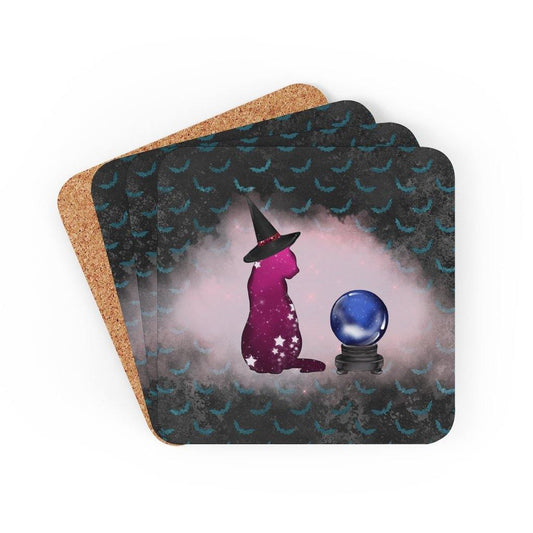 Halloween Coaster Set - Cosmic Witch Cat & Crystal Ball Glam Goth Decor