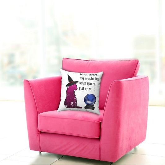 "Witch Please" Halloween Pillow Cat & Crystal Ball Goth Glam