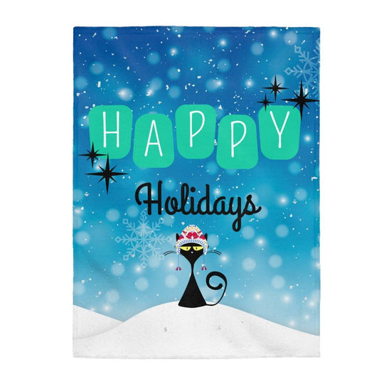 Mid Century Atomic Cat Christmas Velveteen Lightweight Blanket