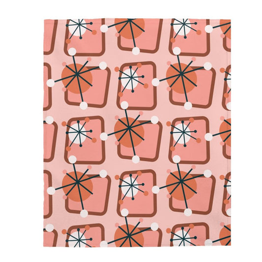Mid Century Atomic Burst Pink & Coral Velveteen Lightweight Blanket