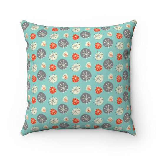 Mid Century 50s Starburst Blue, Gray & Orange Christmas Pillow