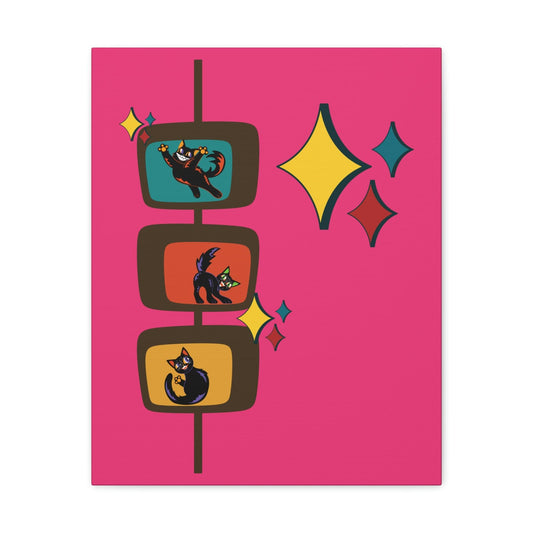 Mid Century Mod Kitsch Retro Cats Pink Canvas Gallery Wrap