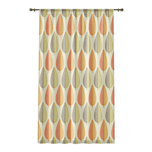 Mid Century Modern Leaves Orange, Green and Cream Sheer Window Curtain