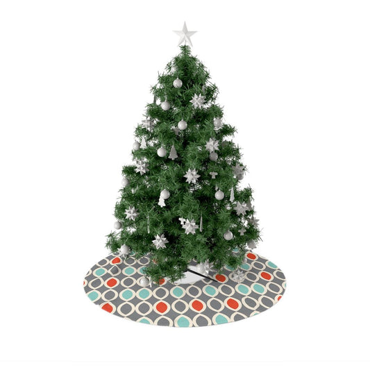 Mid Century Modern Ovals Gray, Blue & Orange Christmas Tree Skirt
