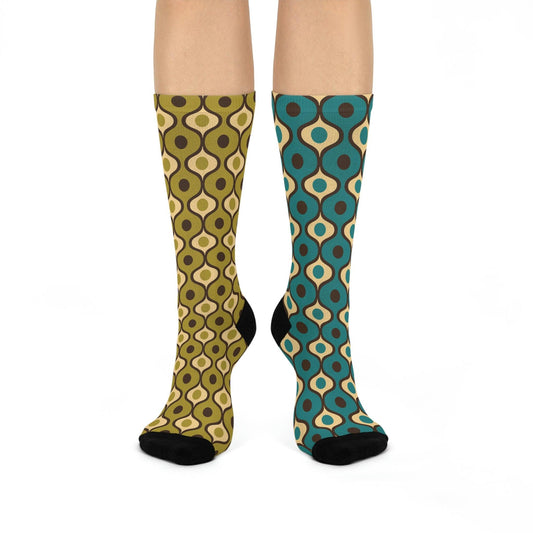 Mismatched Funky Retro Green and Blue Cushioned Unisex Crew Socks