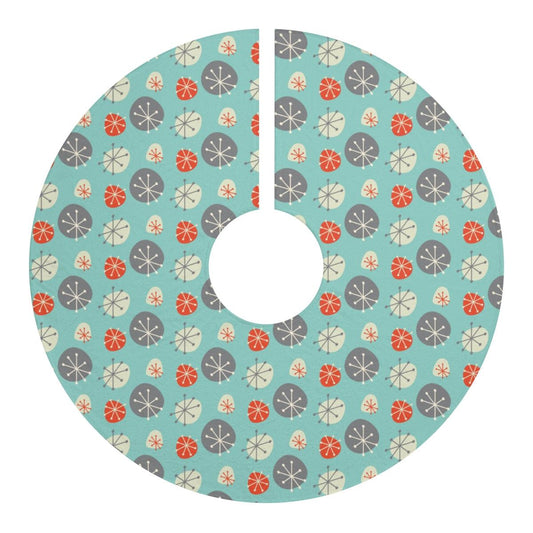 Mid Century Starburst Blue, Grey and Orange Christmas Tree Skirt